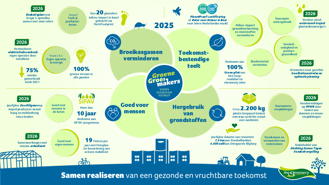 Duurzaamheid maken we tastbaar via onze Groene Groeimakers: telers, medewerkers en partners die het verschil maken. Hun praktijkverhalen brengen onze strategie tot leven en laten zien hoe verschillende stappen leiden tot grote impact.